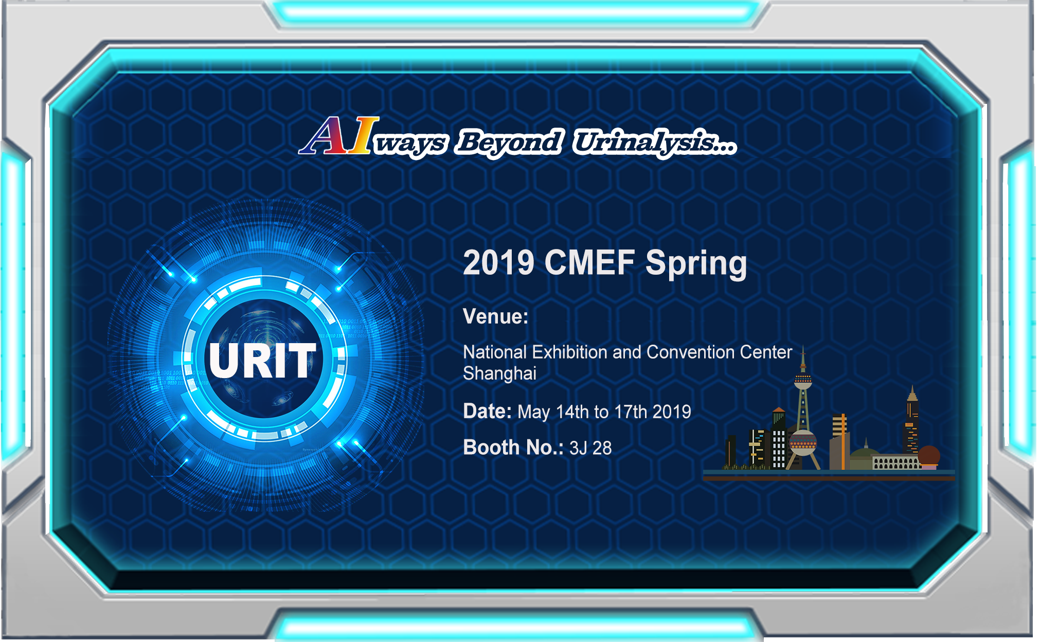 2019 CMEF Spring will be held in Shanghai (National Exhibition and Convention Center) during May. 14th to 17th 2019. Our booth No. is 3J28. Welcome to visit us.
